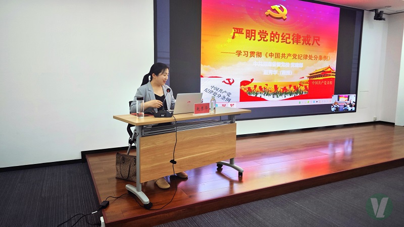赵秀华围绕《严明党的纪律戒尺》为主题,从严明党纪的紧迫性与重要性、党的纪律建设历史变迁、新条例的修订内容等三个方面结合具体案例,对《中国共产党纪律处分条例》进行了解读,内容生动、观点新颖,引导党员干部进一步树牢纪律观念、强化纪律敬畏、严格纪律约束,为党员干部上了一堂生动精彩的党纪教育课,对增强党员干部廉洁从业意识起到积极作用。会后集体观看了警示教育片《“硕鼠”现形记》。