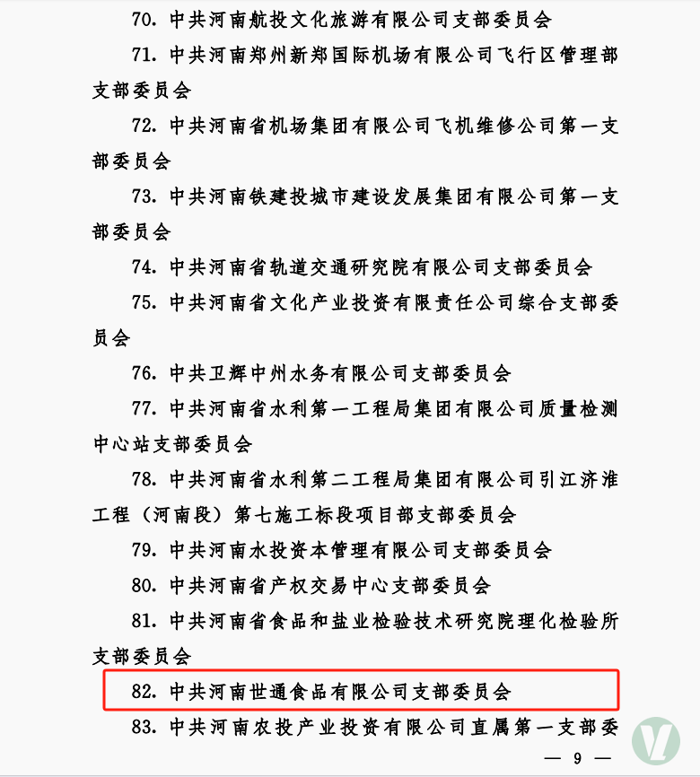 世通食品公司党支部认真贯彻bat365平台官网党委决策部署,以“三化三提升”为组织建设总抓手,坚持“谋经营抓党建、强党建促经营”方针,积极开展“党建+”活动,推进落实“双五工程”,着力打造学习型、服务型、创新型基层党组织,相继获得国家级“高新技术企业”、河南省“农业产业化省重点龙头企业”、“河南省绿色豆制品加工装备工程技术研究中心”、“中国豆制品行业50强企业”、“质量安全示范单位”、河南省“专精特新企业”、河南省粮食行业“十大知名品牌”、省管企业标准化党支部、先锋党支部、郑州市工程技术研究中心等荣誉。此次获得省管企业“五星”党支部荣誉称号,不仅是对世通公司党员干部以及全职工取得成绩的肯定,更为bat365平台官网其他党支部创建工作提供了样本,树立了标杆。